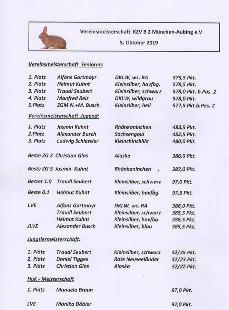 Vereinsmeisterschaft KZV B2 05.10.2019